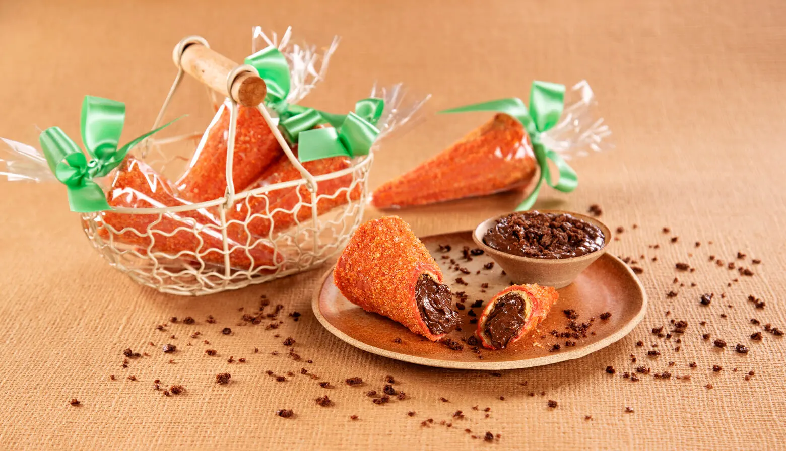- Recheie as casquinhas com o Ovomaltine® Creme Crocante e feche-as com o restante da cobertura de chocolate.