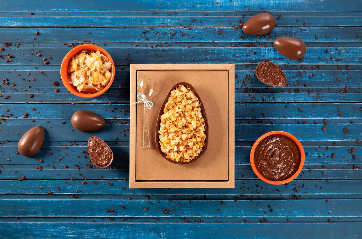 - Coloque uma parte do Ovomaltine® Creme Crocante nas cascas.